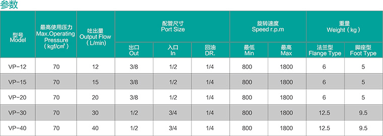 双聊式可变容量轮叶泵浦(VP-2020,VP-3030,VP-4040)